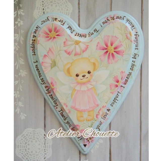 コスモスとお花の妖精のくまちゃんをデザインしました。 在庫限りで、廃番になります。 使用ウッド参考 サイズ 約22×26cm (サンケイ ワイドエッジハート小 使用) 内容: ・実物大図案 ・ステップバイステップの画像入りインストラクション ・カラー写真(マット紙印刷) 発送方法:クリックポスト 他の商品と合わせてご注文の場合は、お問い合わせください。 商品一覧トップの【はじめにお読みください】を、必ずご確認お願いします。 不明な時はお問い合わせください。 ティーチングフリーですが、 お教室でご使用の際は、先生と生徒様各自1部のご購入をお願いします。